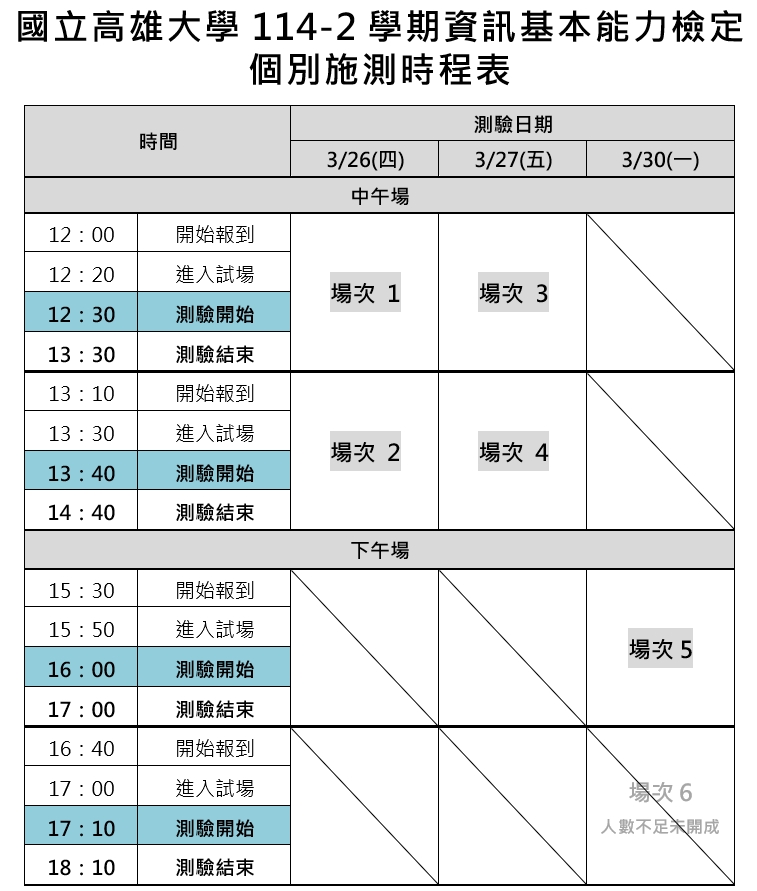 【公告】114-2 學期資檢施測場次表(最終公告)